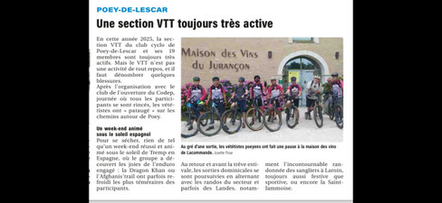 Cécile Bernard Alexis Michel et Jeff  prennent la direction du nord-est du village accompagné d'un soleil généreux qui réchauffe les mollets par une matinée un peu fraîche au départ,  les +de 25° sont annoncés dans l'après-midi mais pour l'instant il fait moins de 15°. Nous traversons où évitons des villages que nous connaissons par-cœur mazerolles, Morlanne, et assez vite nous quittons les PA entre  Casteide Candau et Peyre . Nous remarquons des 40 sur les plaques des véhicules  , c’est parti pour les bosses de la Chalosse.